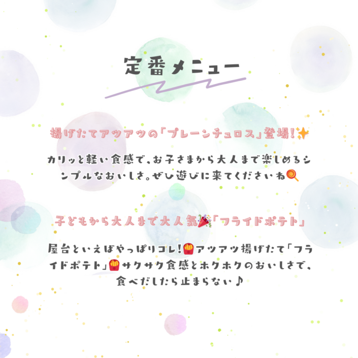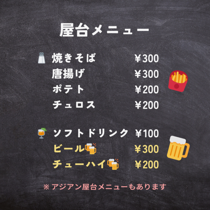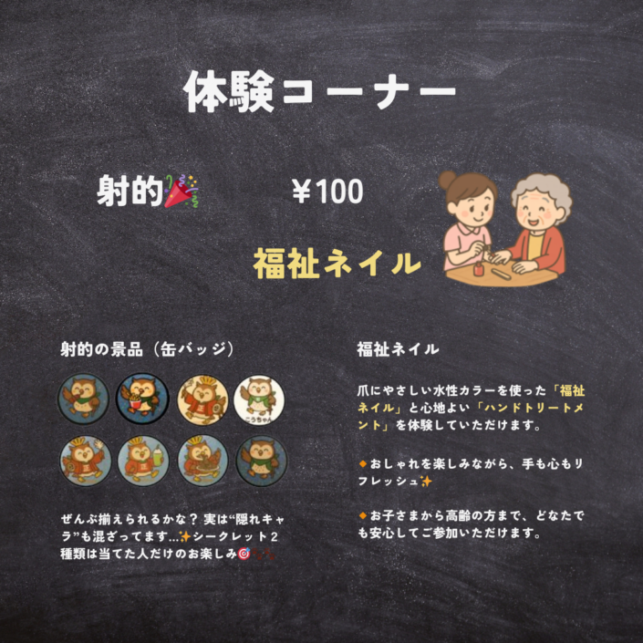 🟠屋台:ドリンク・焼きそば・ポテト・ゲーム・福祉ネイルなど