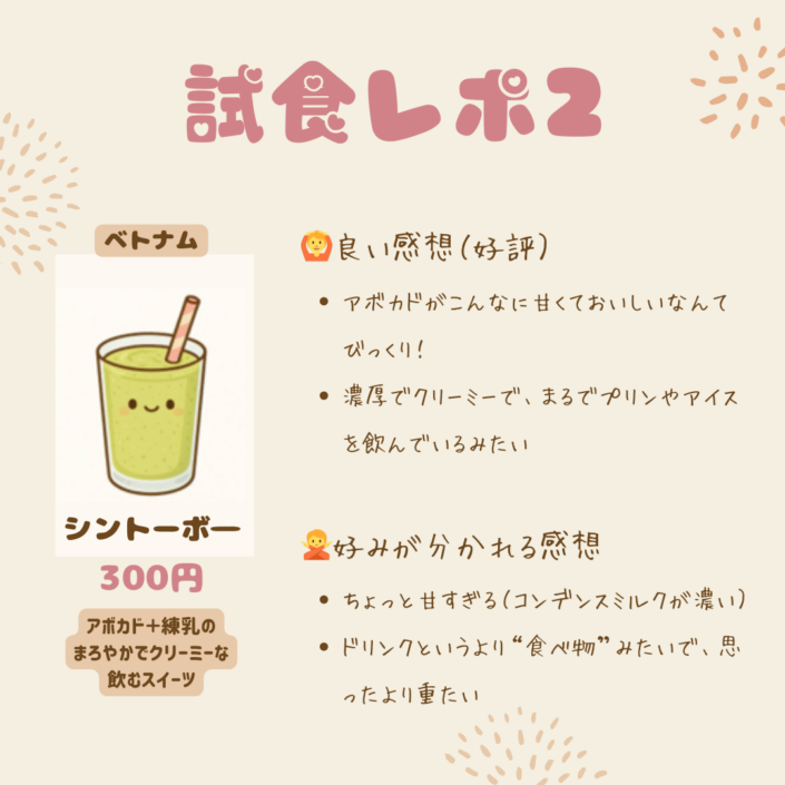 🔴アジアンコーナー試食レポ➡第2弾シントーポー(ベトナムアボガドスムージー)