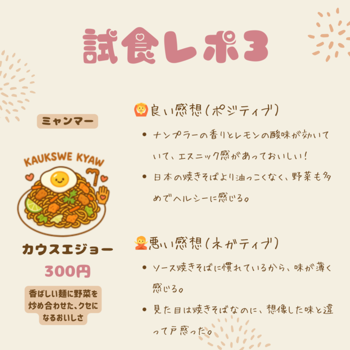 🔴アジアンコーナー試食レポ➡第3弾ミャンマーの焼きそば「カウスエ・ジョー」