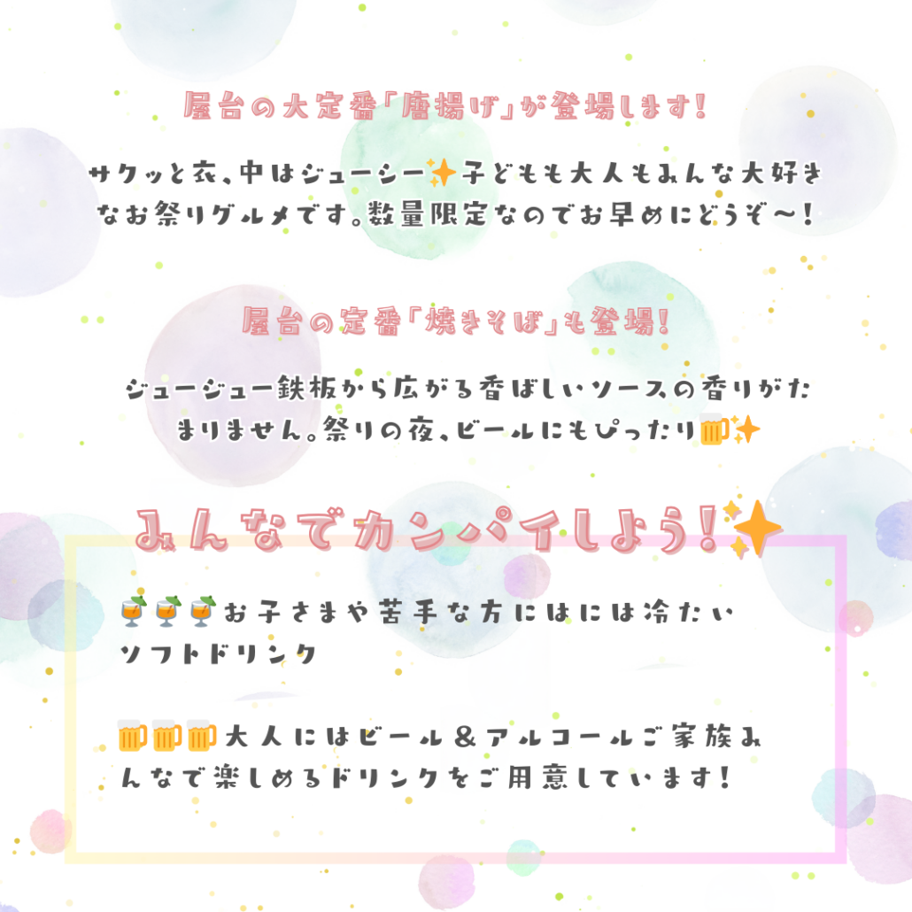 🔸お祭りの夜にぴったり、熱々をその場でどうぞ!