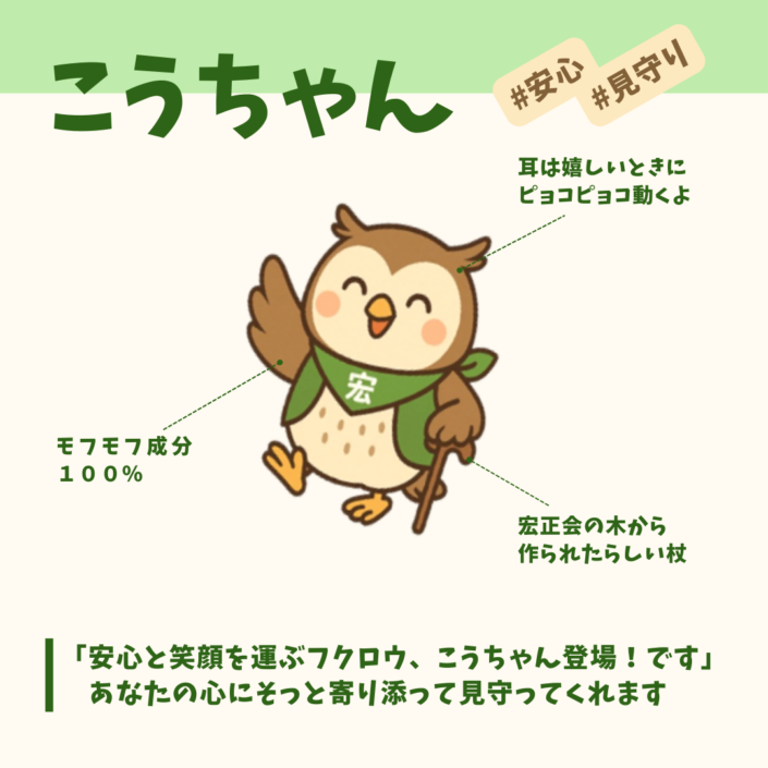 「安心と笑顔を運ぶフクロウ、こうちゃん登場!です」