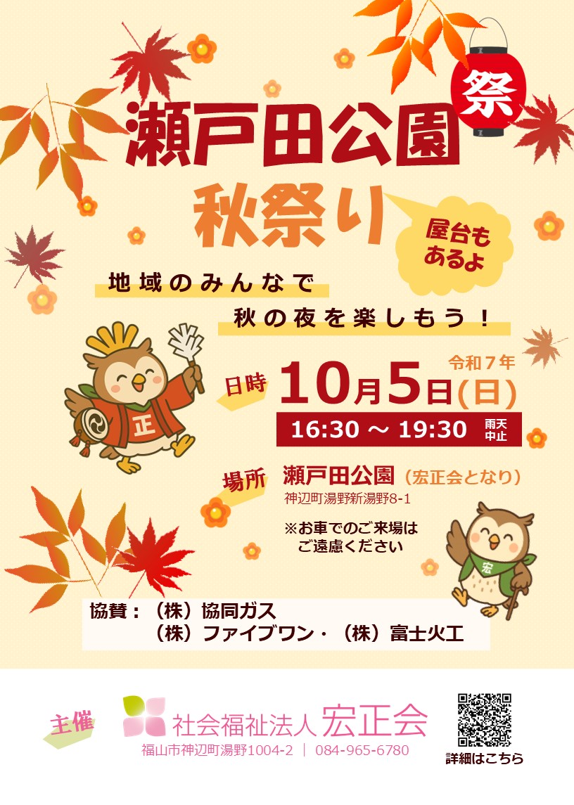 お問い合わせ先:社会福祉法人宏正会(代表084-965-6780)